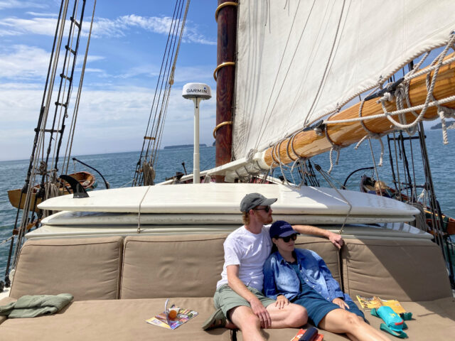 Wake up to the quiet solitude of Maine’s coast, find renewal in the wind and sun, and surprise yourself as you help steer the ship. Aboard our vessels, with itineraries tossed to the wind, our guests find both a spark of adventure and time to reflect.