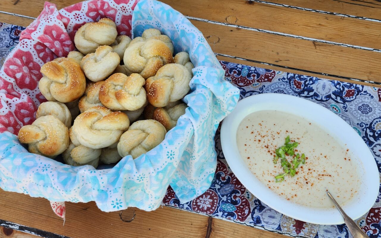 - Serve warm with freshly baked warm pretzel knots.