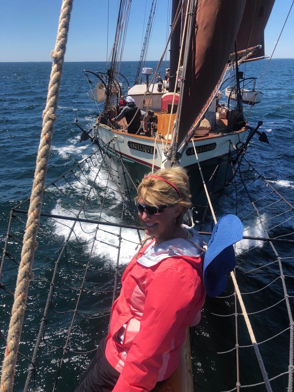 Jenny Tobin Guests helping to haul down the headsails on Windjammer Angelique