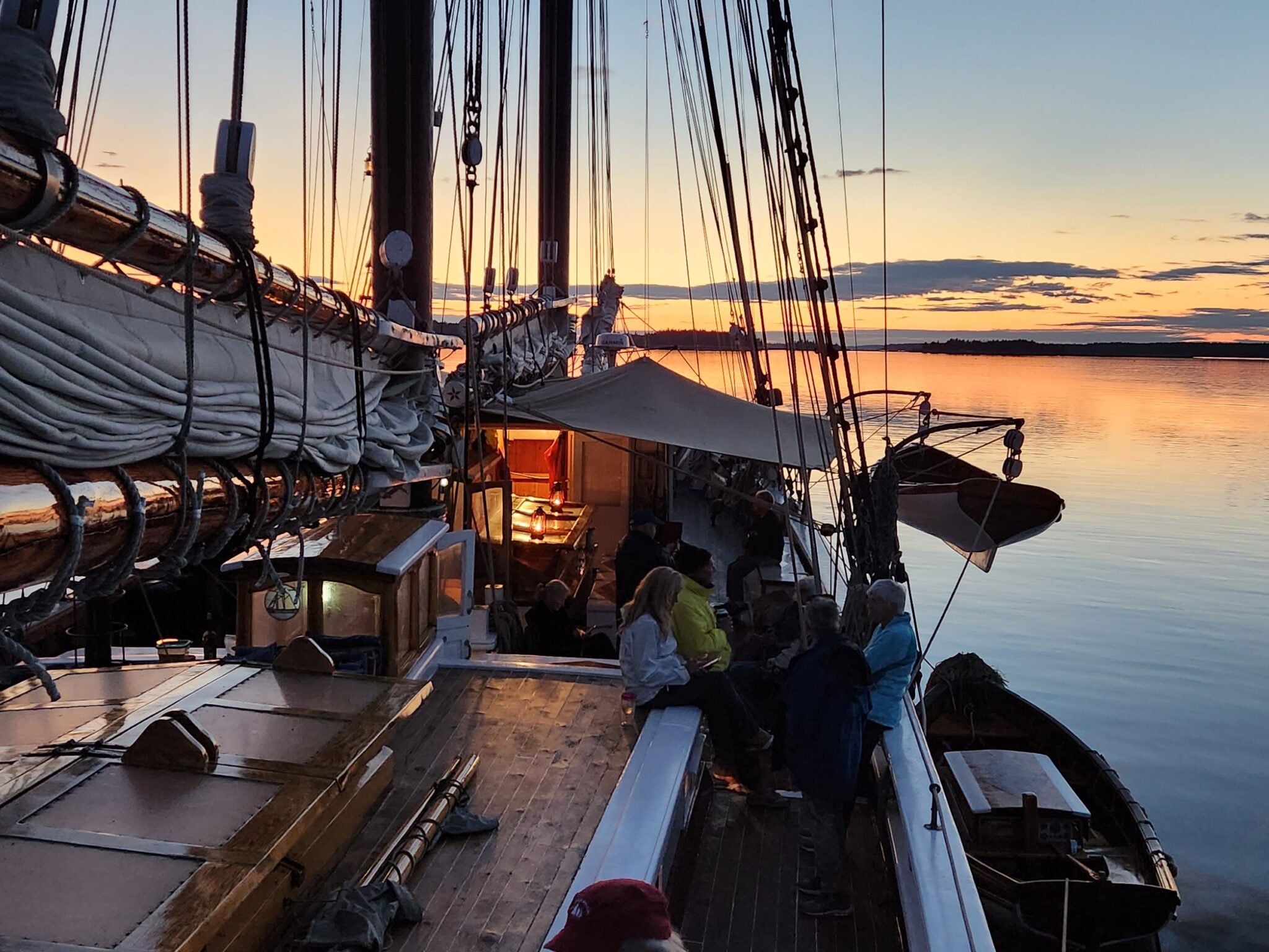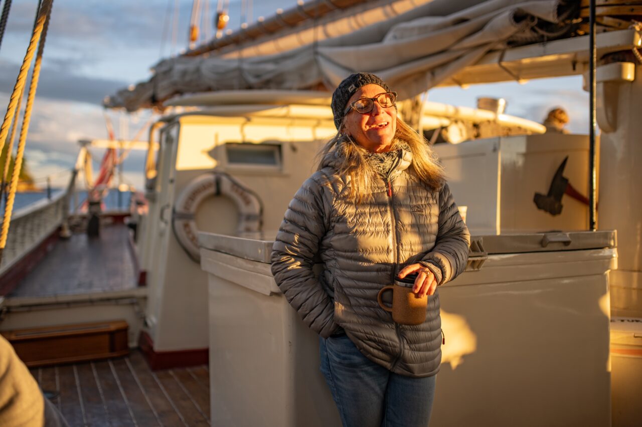 Cabins are cozy by design. The real living space on a windjammer is the fresh air and open deck. Days unfold outdoors. There’s room to spread out and make the deck your own. Stretch out in the sun, tuck into a quiet spot with a book, or lean on the rail with a cup of coffee as islands drift past. Guests naturally find their rhythm — some social, some solitary — and there’s space for both.